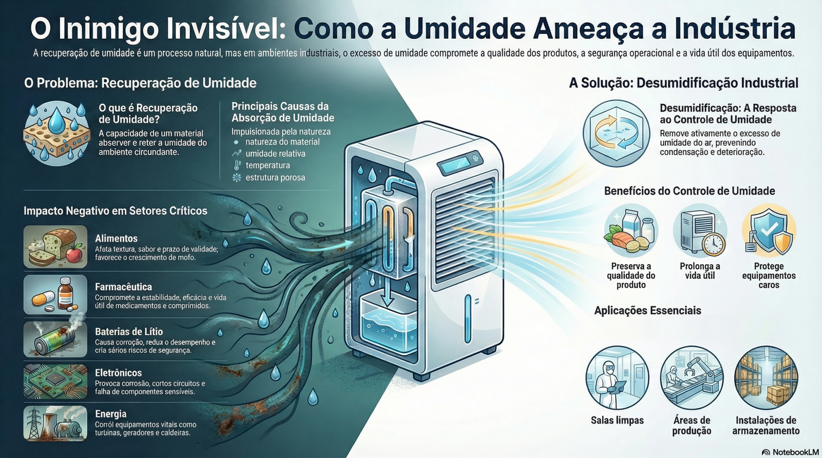 De modo geral, a desumidificação é um recurso indispensável para preservar a integridade de produtos, processos e equipamentos em diversos setores da indústria moderna.